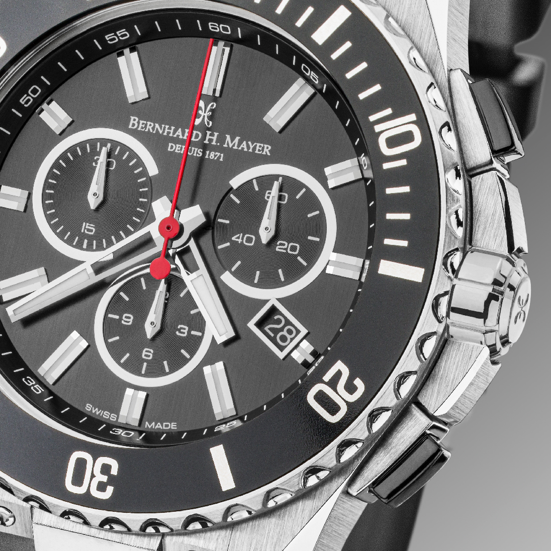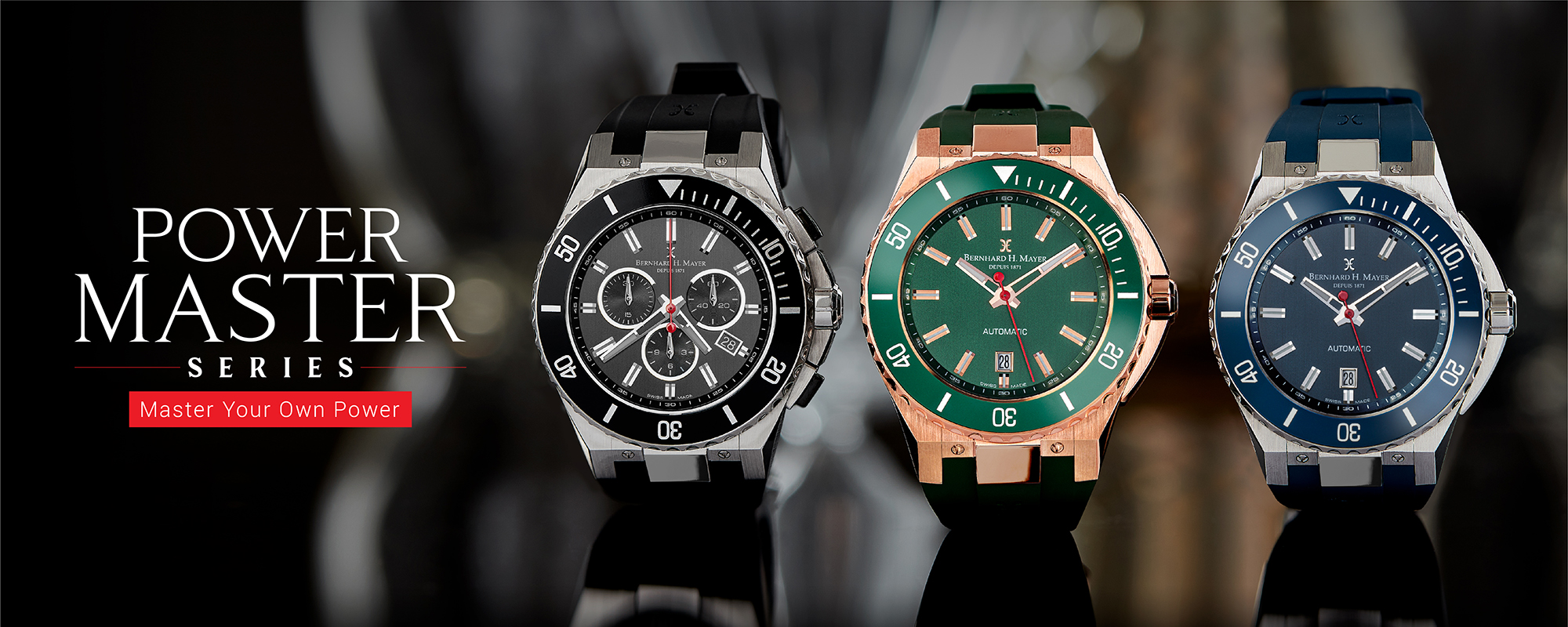 Well-balanced with a solid stainless-steel body, sturdy rubber strap, rotating bezel, and red second hand, each PowerMaster timepiece is a wearable trophy to mark your aspirations and achievements, whilst keeping to the essentials of timekeeping.