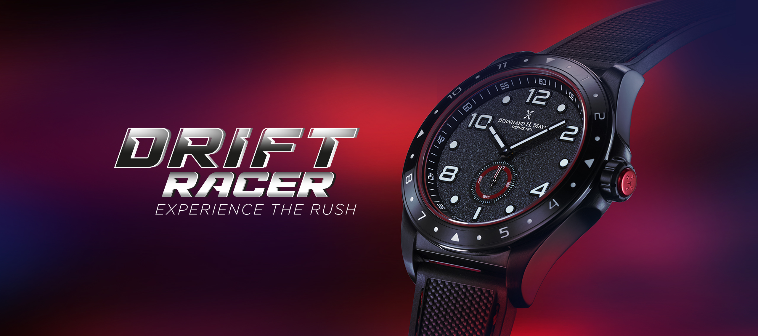Reminiscent of the heart pounding, high speed action of the racetrack with its signature black, white, red accents, the black dial of the Drift Racer paired with its red and white markings make this a standout piece that exudes power and sophistication.